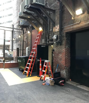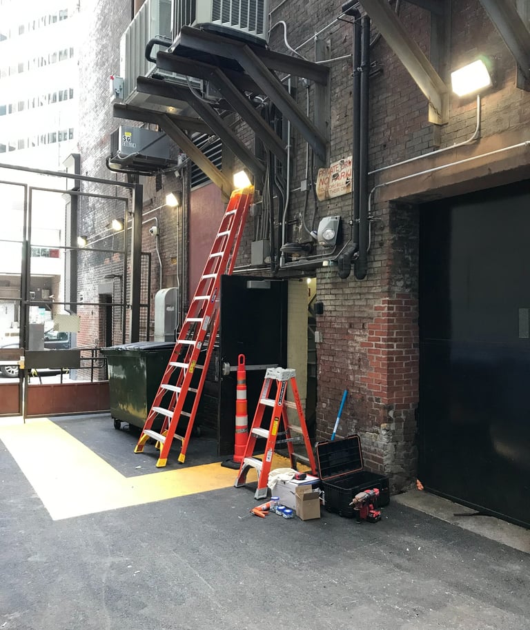 Installed conduit and mounted four weatherproof wall pack lights with dusk-to-dawn sensors to improve safety and visibility in the business’s back alley and loading dock.