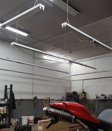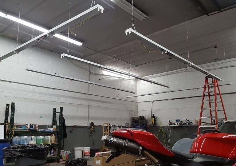Laid out, mounted, supported, and wired twelve 8-foot LED strip lights in an auto body shop for bright, efficient workspace lighting.